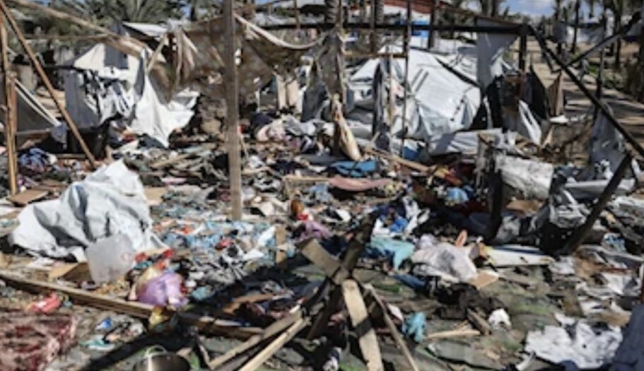 واحتشد المحتجون امام المنازل المدمرة وهم يرددون هتافات التنديد بالعدوان …