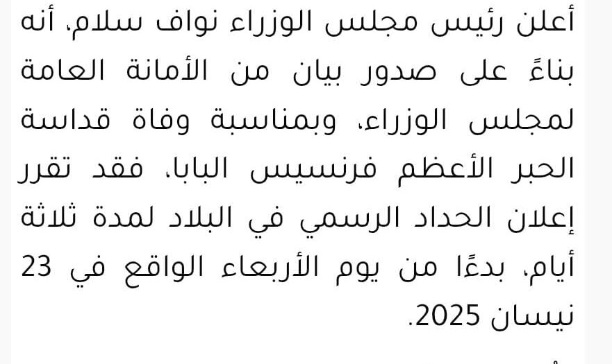 حضرة رئيس الوزراء الاستاذ نواف سلام المحترم والدولة الموقرة