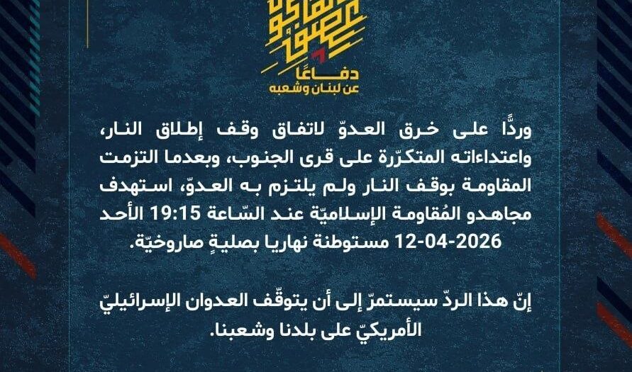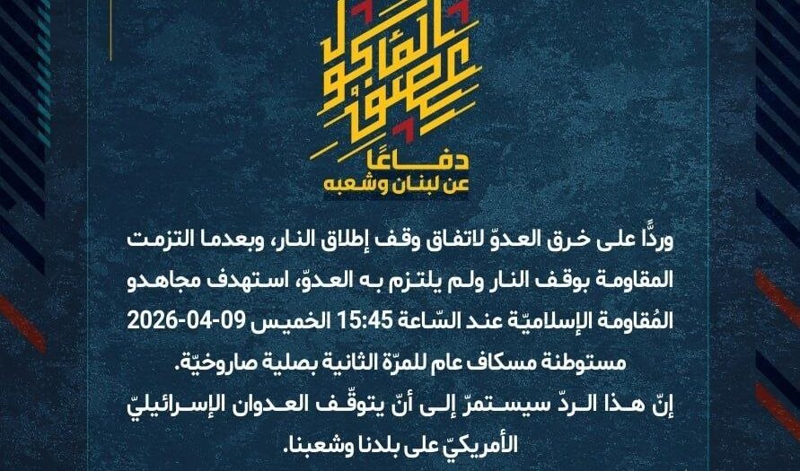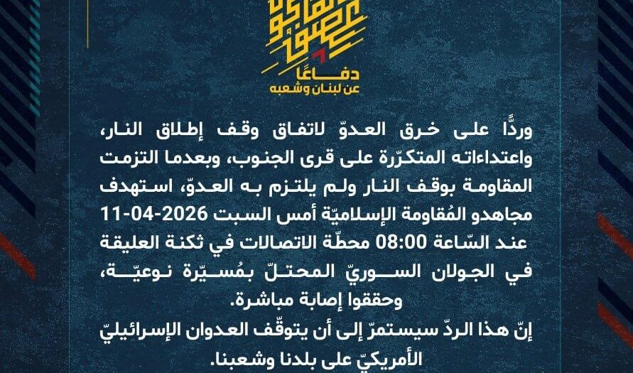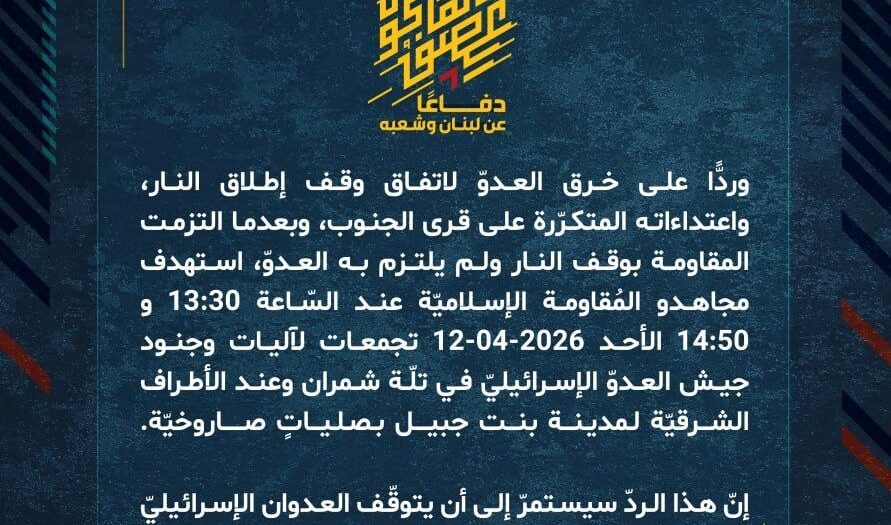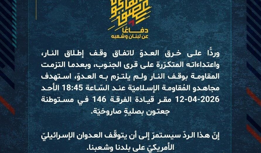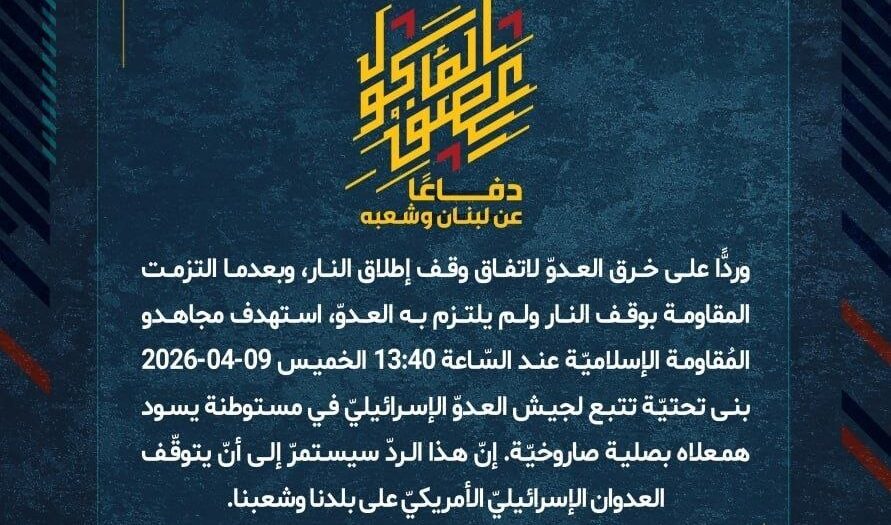بيان صادر عن المقاومة الإسلامية (26):