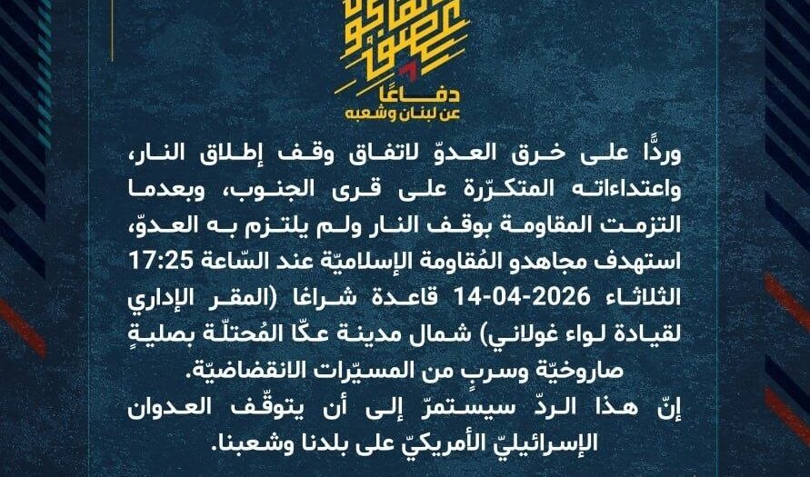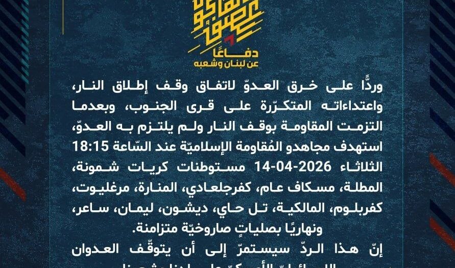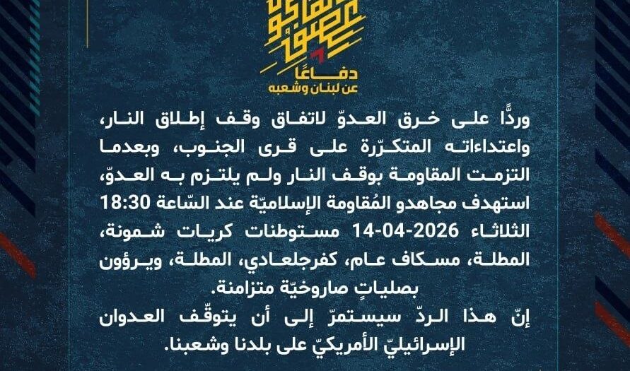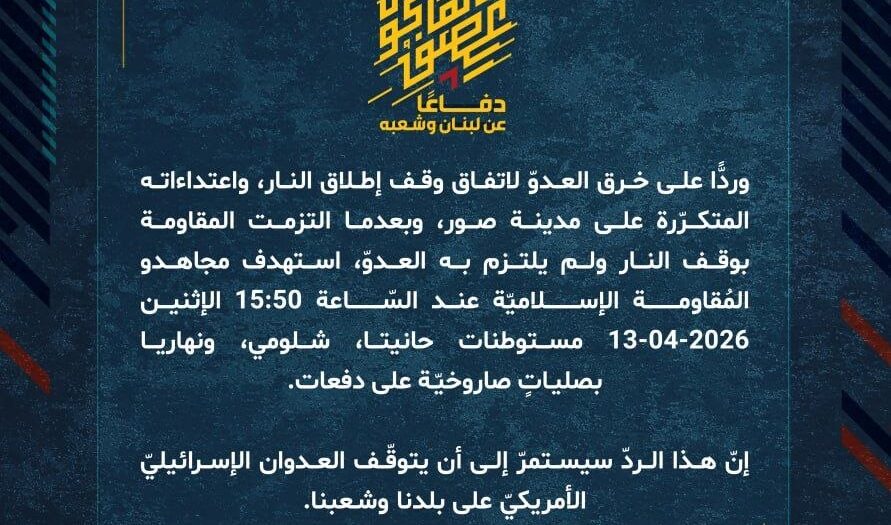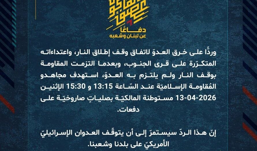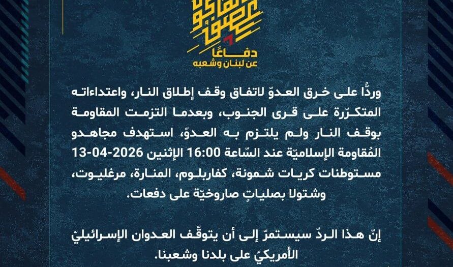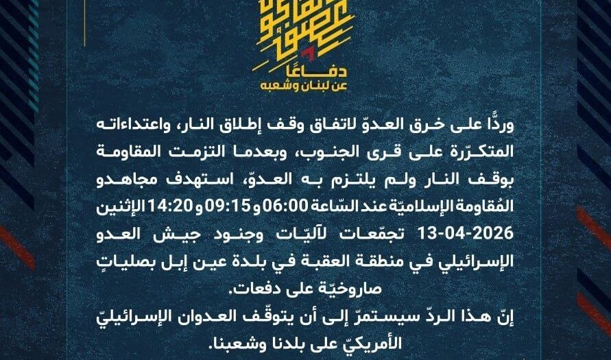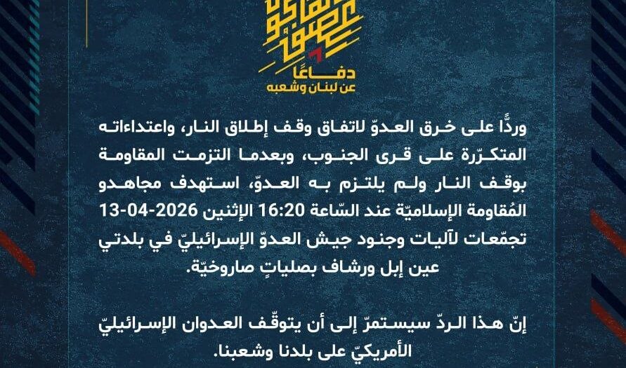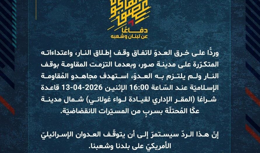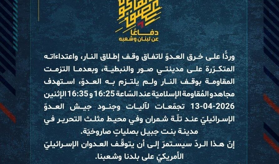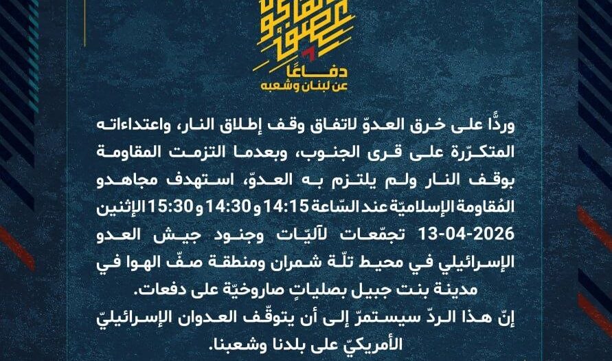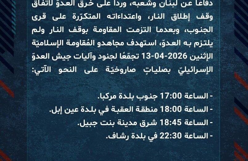 كلمة حجة الإسلام والمسلمين الأمين العام لحزب الله سماحة الشيخ نعيم قاسم 13-04-2026: