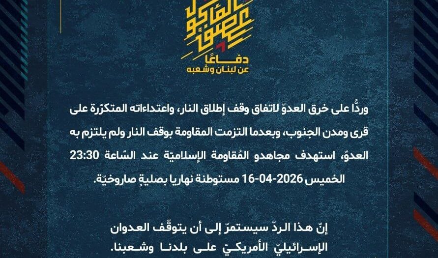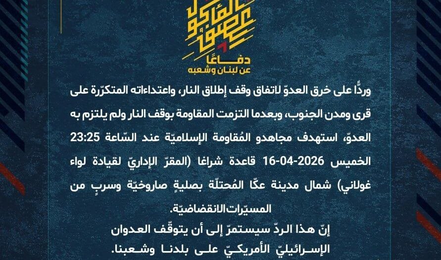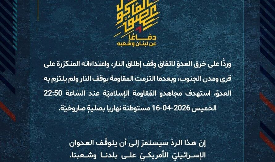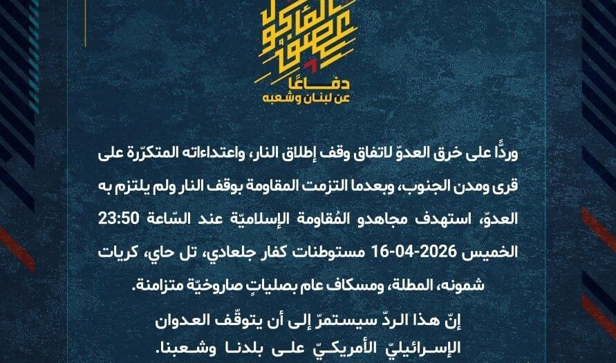 بيان صادر عن المقاومة الإسلامية (16):