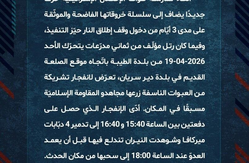 في سياق مواصلة الاحتلال الإسرائيلي خرق وقف إطلاق النار، قامت …