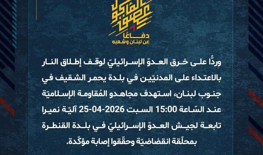 أقرّ المتحدث باسم جيش العدو الاسرائيلي باستهداف صاروخ أرض-جو ايراني …