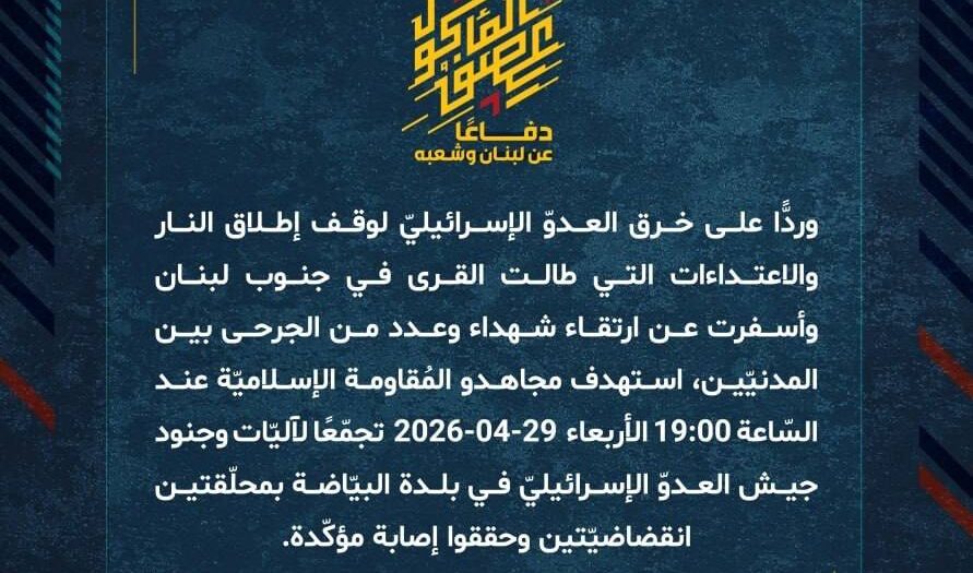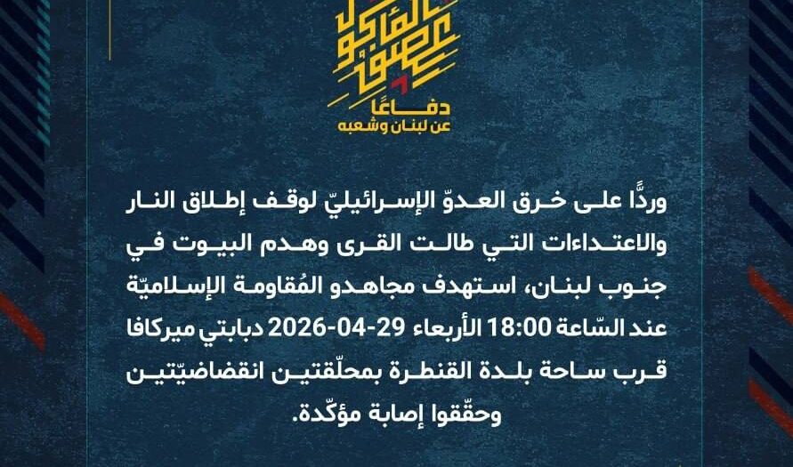 الخروقات الإسرائيلية لوقف إطلاق النار مع لبنان من 17/ 04/ 2026 حتى 25/ 04/ 2026