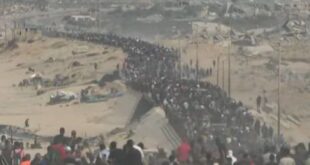 وسائل إعلام فلسطينية: مع بدء سريان وقف إطلاق النار في قطاع غزة، بدء عودة النازحين إلى مدينة غزة، عبر شارع الرشيد.