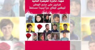 ️ دعاء عمرو – الأخبار قبل عام، كان آل عمرو قد استقبلوا في بلدتهم المعيصرة أقارب نازحين من صور وقانا فرّوا من جحيم الحرب، معتقدين بأن البلدة الواقعة في فتوح كسروان في مأمن من العدوان. غير أن القدر كان أقسى، إذ استهدف العدو مبنى ملأوا طبقاته الأربع، مرتكباً مجزرة مروعة ذهب ضحيتها 16 شهيداً من المدنيين. عند الساعة 2:25 بعد …