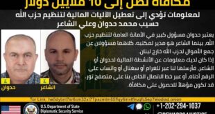 أكمل القراءة »يمولان حزب الله… مكافأة ضخمة لمن يدلي بمعلومات عنهما