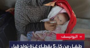 – طفل من كل 5 بقطاع غزة يُولد قبل أوانه أو وزنه ناقص، وذلك جراء التجويع “الإسرائيلي” الممنهج المستمر منذ عامين. – نطالب بإدخال مساعدات فورية واسعة النطاق للأطفال والرضّع والعائلات في قطاع غزة. – الأطفال الفلسطينيين في قطاع غزة يحتاجون الوصول إلى المزيد من خدمات التغذية والصحة المنقذة للحياة.