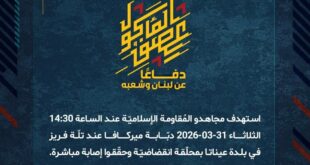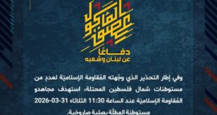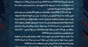 بِسْمِ اللَّـهِ الرحمن الرَّحِيمِ ﴿أُذِنَ لِلَّذِينَ يُقَاتَلُونَ بِأَنَّهُمْ ظُلِمُوا وَإِنَّ اللَّهَ عَلَىٰ نَصْرِهِمْ لَقَدِيرٌ﴾ صَدَقَ اللهُ العَلِيّ العَظِيم في إطار سعيه إلى السيطرة على منطقة بنت جبيل، باشر جيش العدوّ الإسرائيليّ قبل أيّام إجراءاته التحشديّة للهجوم عبر محور تقدّم رئيسيّ انطلاقًا من مستوطنة المالكيّة الحدوديّة. ورُصدت مؤشّرات التحرّك الفعليّ لقوّاته على هذا المحور بتاريخ 28-03-2026 الساعة 20:45 مع تقدّم دبّابة …