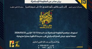 أكمل القراءة »بيان صادر عن المقاومة الإسلامية (15):