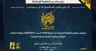 أكمل القراءة »بيان صادر عن المقاومة الإسلامية (26):