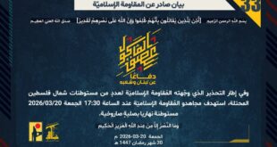 أكمل القراءة »بيان صادر عن المقاومة الإسلامية (33):