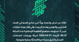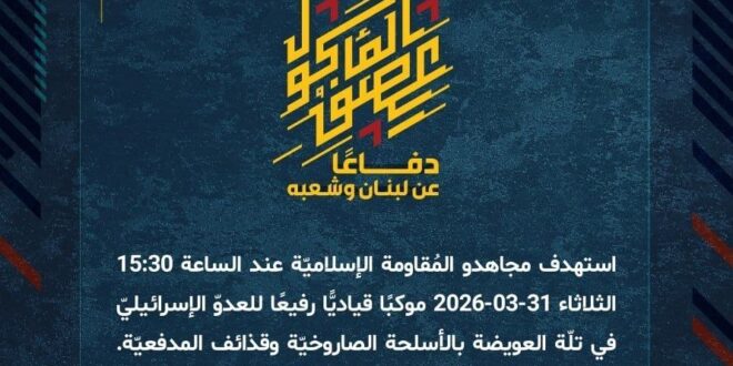 دفاعًا عن لبنان وشعبه، استهدف مجاهدو المُقاومة الإسلاميّة عند الساعة 15:30 الثلاثاء 31-03-2026 موكبًا قياديًّا رفيعًا للعدوّ الإسرائيليّ في تلّة العويضة بالأسلحة الصاروخيّة وقذائف المدفعيّة.