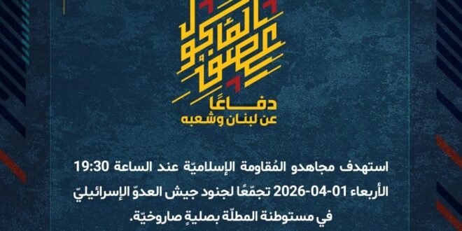 دفاعًا عن لبنان وشعبه، استهدف مجاهدو المُقاومة الإسلاميّة عند الساعة 19:30 الأربعاء 01-04-2026 تجمّعًا لجنود جيش العدوّ الإسرائيليّ في مستوطنة المطلّة بصليةٍ صاروخيّة.