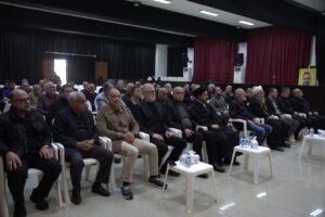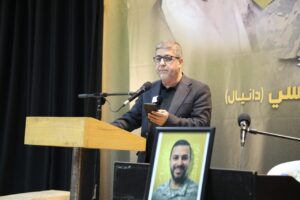 **حيث ألقى والد النننـهيد، الحاج بهاء الدين النابلسي، كلمةً مُعبِّرة رثى فيها وَلَدهُ النننـهيد، مؤكّدًا على الاستمرار في خطِّه ونهجه كما سائر النننـهداء القادة، كما وتخلّل الحفل مجلس عزاء حسيني.