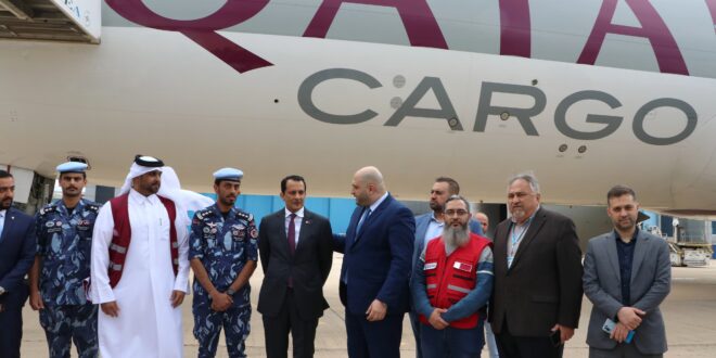 إستقبل وزير الصحة العامة الدكتور ركان ناصر الدين طائرة مساعدات قطرية على متنها مئة طن من المعدات الطبية والدوائية الطارئة، ستقوم وزارة الصحة العامة بتوزيعها بحسب الحاجة على المرافق الصحية والاستشفائية لدعم القطاع الصحي.