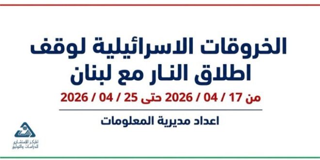 الخروقات الإسرائيلية لوقف إطلاق النار مع لبنان من 17/ 04/ 2026 حتى 25/ 04/ 2026 اخبار لبنانية شاركها Facebook Twitter
