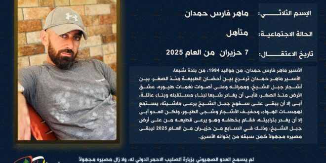 تاريخ ومكان الاعتقال : 7 حزيران 2025 في سفوح جبل الشيخ جنوب لبنان