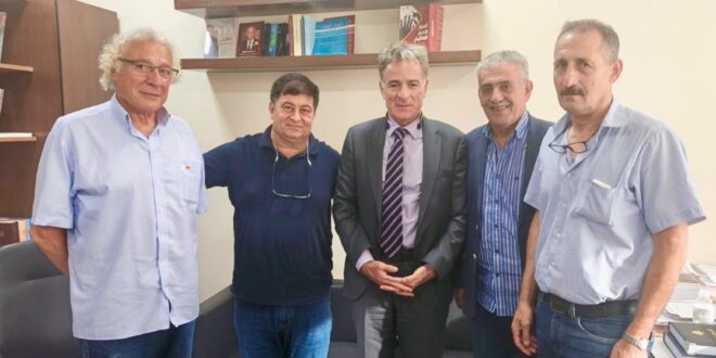 استقبل النائب الدكتور الياس جراده في مكتبه وفداً من “تجمّع أبناء البلدات الجنوبية الحدودية” حيث شكره الوفد على تضامنه مع منسق التجمع المهندس طارق مزرعاني بعد التهديدات الاسرائيلية له وعمله الدؤوب لكي تاخذ هذه القضية ،وغيرها من التعدّيات المتكرّرة على المهندسين والمدنيين ، مجراها الاحتجاجي قانونياً ودبلوماسياً عبر المجلس النيابي والجهات الرسمية ، وكذلك قدّم الوفد للنائب جراده لائحة بالمقترحات والمطالب المتعلّقة بحاجات النازحين والعائدين إنسانياً ومعيشياً ووعد أيضاً بمتابعة هذه المطالب بكل الوسائل المتاحة وبالتنسيق مع التجمّع.
