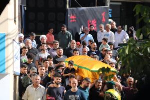 انطلق موكب التشييع من أمام منزل عائلته، حيث ارتفعت الأعلام اللبنانية ورايات المقاومة، وتردّدت أناشيد الوداع التي اختلطت بدموع الفقد. حمل المشيّعون النعش الذي لفّ براية حزب الله على الأكفّ، يتقدّمهم ثُلّة من المجاهدين بزيّهم العسكري، فيما رُفعَت صور الشهيد وهو يبتسم بثبات من يعرف أنّ طريقه شرفٌ لا موت.