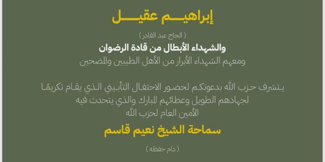 يتشرف حزب الله بدعوتكم لحضور الاحتفال التأبيني