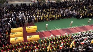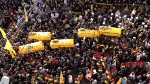 في مشهدٍ يفيض بالعزّة والوفاء شيّع حزب الله الشهداء الخمسة ِبمواكبَ حاشدة ٍشارك َفيها شخصيات وفعاليات ، مسؤول منطقة جبل عامل الثانية في حزب الله علي ضعون ، النائبان هاني قبيسي وناصر جابر ، عضو هيئة الرئاسة في حركة أمل خليل حمدان ، علي قانصو ممثل رئيس كتلة الوفاء للمقاومة النائب محمد رعد ، علماء دين ، عوائل الشهداء ووفود من مختلف المناطق وحسد من الأهالي ، وفكان التشييع ُعهدًا يتجدّد ُارتفعت فيه راياتُ المقاومة وصدحت الحناجر بالقَسَم على مواصلة الطريق ، وألقى النائب علي فياض كلمةً قال فيها أمام جثامين شهدائنا الأحباء، أمام دمائهم المباركة، وأمام آلام ذويهم، أبائهم وأمهاتهم وأطفالهم..