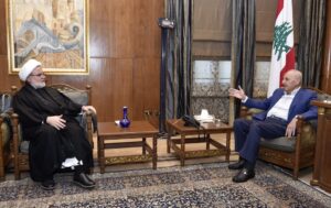 وأضاف : اليوم أجريت لقاءات مع فخامة رئيس الجمهورية ووزير الخارجية ودولة رئيس مجلس النواب الموقر الأستاذ نبيه بري وأمس التقيت وزير الاقتصاد ومن المفترض أن أكمل اللقاءات القادمة مع رئيس الحكومة ، ولا يفوتني إلا أن أذكر وأشير إلى اللقاء الذي جمعني مع سماحة مفتي الجمهورية اللبنانية ورئيس المجلس الإسلامي الشيعي الأعلى .