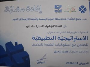 أقامت متوسطة الدوير الرسمية، بالتعاون مع تجمع المعلمين واللجنة التربوية في الدوير، ورشة عمل تربوية بعنوان «الاستراتيجيات التطبيقية للتعامل مع السلوكيات الصعبة للتلاميذ»، وذلك في إطار تعزيز الأداء التربوي وتطوير مهارات الكادر التعليمي في التعامل مع التحديات السلوكية داخل الصفوف الدراسية.