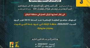 ردًّا على العدوان الإسرائيلي المجرم الذي طال عشرات المدن والبلدات اللبنانيّة بما فيها ضاحية بيروت الجنوبيّة، شنّ مجاهدو المقاومة الإسلامية عند الساعة 15:00 من عصر اليوم الجمعة 06/03/2026 هجومًا جويًا على قاعدة كتسافيا في الجولان السوري المُحتلّ بسربٍ من المُسيّرات الانقضاضيّة.