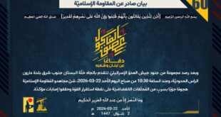 دفاعًا عن لبنان وشعبه، استهدف مجاهدو المُقاومة الإسلاميّة عند الساعة 06:30 الأحد 22/03/2026 قاعدة ناحل غيرشوم جنوب راموت نفتالي بسربٍ من المسيّرات الانقضاضيّة.
